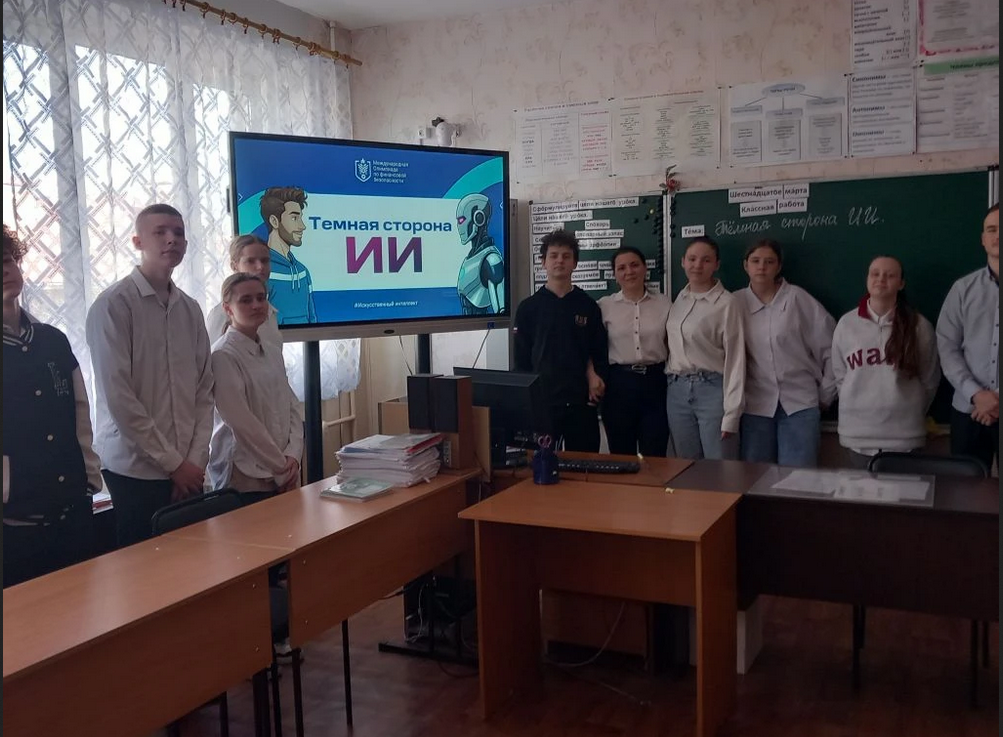 Безопасность: разобрали практические правила безопасного взаимодействия с ИИ‑сервисами – как защитить себя и свои данные.Урок прошёл в интерактивном формате: ребята анализировали реальные примеры дипфейков, обсуждали кейсы с предвзятостью алгоритмов и учились критически оценивать информацию, созданную с помощью ИИ. Школьники активно участвовали в дискуссии, задавали вопросы и делились своими мыслями о том, как технологии меняют мир вокруг нас.